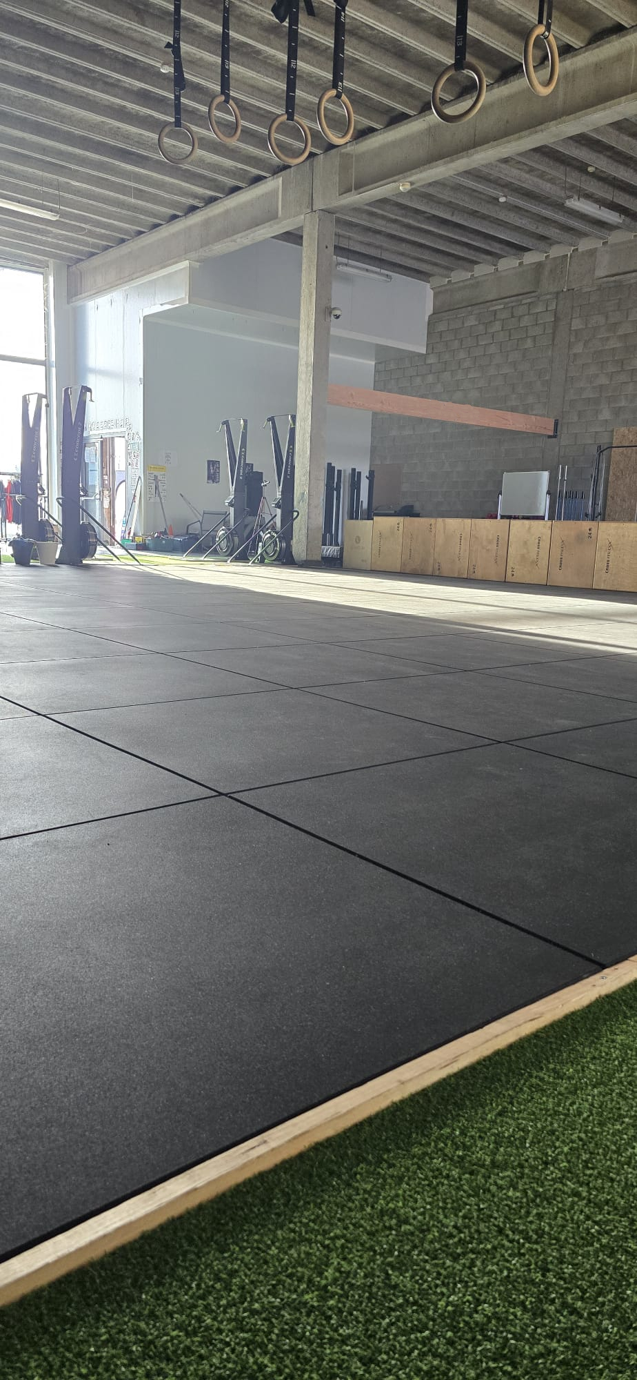 De PREMIUM tegels zijn geschikt voor sportscholen om te gebruiken als onder andere CrossFit, Hyrox, Cardio, Fysio, sport en fitnessvloer. De vloertegels hebben een afmeting van 100×100cm met een dikte van 20 mm welke zeer geschikt is om te gebruiken voor vloeren met cardio- en krachtplekken voor gebruik van losse gewichten, gewichtheffen en zwaardere oefeningen.